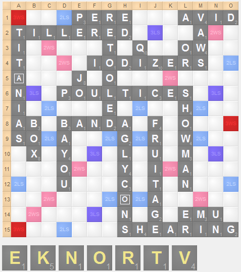 CSW Endgame #16 Score: 451-454 Pool: EEF Solution Opponent’s options: FEE m8 (21), FLEE c1 (14) Scoring options: OKEH i12 (36), VENEER k3 (38) Setup options: N/A Not every endgame is just about strategy. Here, the difficulty is simply in finding the highest scoring option or options. revious ndgame Database ext